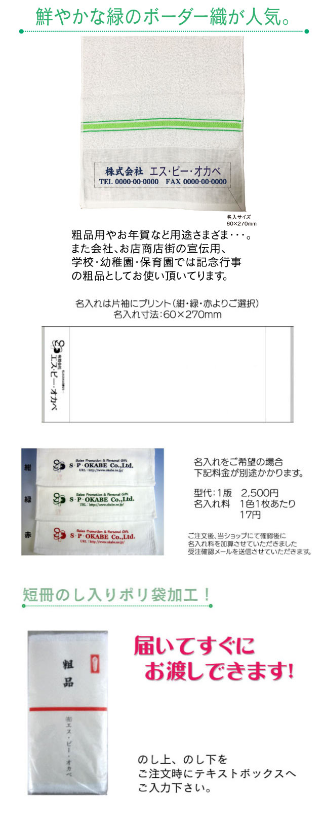 名入れ印刷(昨年同様)のご注文の場合は、弊社からの正式な受注確認のメール後に別途前回の名入れ内容の確認のメールを送信させていただきます。こちらの名入れ内容にて名入れ作業をすすめさせていただきます。